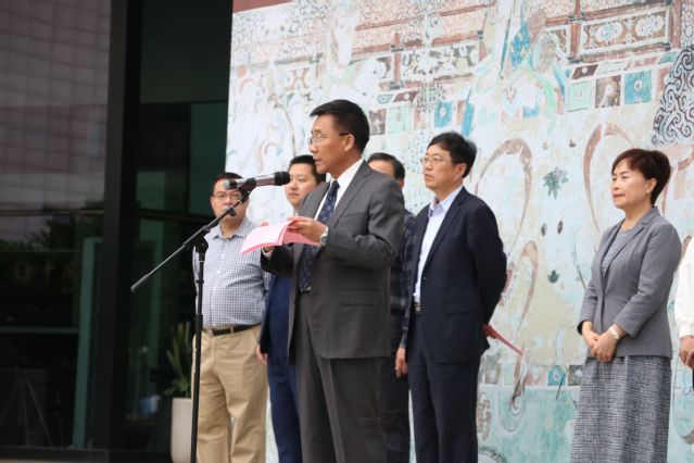 为传播弘扬敦煌文化,庆祝437必赢会员中心建校110周年,5月18日上午,由敦煌研究院、中国敦煌石窟保护研究基金会与437必赢会员中心主办,437必赢会员中心党委宣传部、中国煤炭科技博物馆、矿大437必赢会员中心协办的“敦煌壁画艺术精品高校公益巡展”在矿大煤炭科技博物馆广场举行开幕仪式。校党委书记刘波,副校长曹德欣,敦煌研究院党委委员、中国敦煌石窟保护研究基金会秘书长宋真,敦煌研究院人力资源处副处长冯兰参加了此次开幕仪式。学校各相关部门领导及负责人、敦煌研究院和基金会的工作人员、437必赢会员中心师生代表、志愿讲解员以及众多敦煌壁画爱好者参加了此次开幕式。