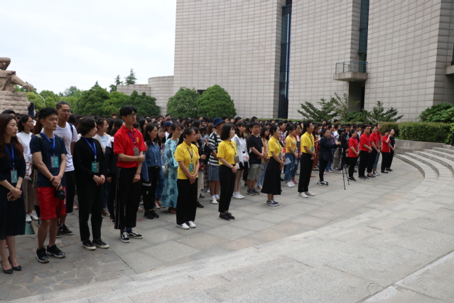 学生志愿讲解员为参观者进行讲解