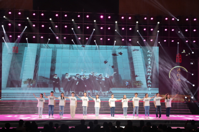 晚会以“源·行远”为主题,共分为“源远流长”、“夏若繁花”、“行健致远”三大篇章,展现了矿大百十载办学的艰辛与荣光。
