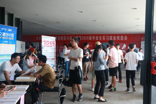 在学院领导、各系主任和专业老师的大力支持下,此次招聘会邀请到来自上海、宁波、广州、徐州等地的32家单位参加现场招聘,需求专业涉及建筑学、城乡规划、环境设计、工业设计、音乐学等各个方向。在双选会开始前,活动志愿者们协助各单位招聘人员进行了场地布置,提前分配好工作并全部就位,负责活动现场的咨询签到,维护现场秩序。在双选会现场,同学们有序排队,积极地向心仪的单位投递简历,主动与招聘人员交流。面对招聘者的提问,同学们自信从容地回答,各单位招聘人员也对同学们提出的问题进行了耐心细致的解答。学院党委书记龙景奎、党委副书记范韶维等领导老师深入双选会现场,与招聘单位进行亲切交谈,了解企业基本情况、用人需求和行业发展前景。