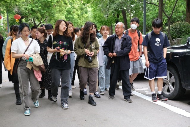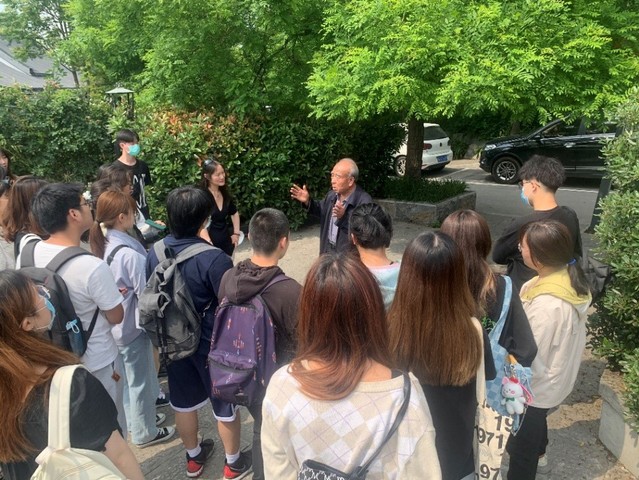 调研现场,任课教师冯蕾邀请了徐州市正源古建孙老先生前来为同学讲解户部山一带古建筑发展历史。孙老先生耐心且细致,同学们全程认真听讲。他说,戏马台是徐州现存最早的古迹之一,公元前206年,盖世英雄项羽灭秦后,自立为西楚霸王,定都彭城,于城南里许的南山上,构筑崇台,以观戏马,故名戏马台。现经整修,戏马台以巍巍壮观,重光溢彩的面貌,迎接了不少海内外游客。