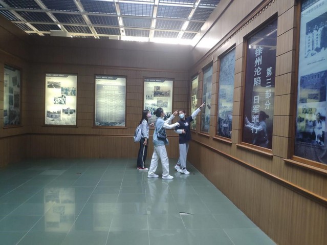 下午两点,耿世华一行人来到淮海战役纪念塔园区,首先前往参观了国防教育馆门前的武器陈列区。园内,一辆辆沉重的坦克承载着沉重的历史,冰凉的触感仿佛就是战场上的那般冷酷。随后,成员们进入国防教育馆。橱窗里的照片展示着从1931年开始到1945年结束,中国人民反抗日本帝国主义对华侵略战争14年艰难曲折的历程。寄意寒星荃不察,我以我血荐轩辕,是无数抗日先烈的爱国奉献精神,凝聚起了中华民族不屈的脊梁。成员们认真参观了学习前辈们不屈的精神。最后,成员们聚在树荫下开展交流研讨会议交流彼此的心得感悟,每位同学就参观所感进行了发言,同时进行活动总结和研讨记录。