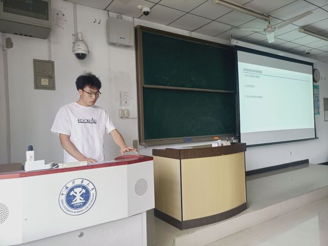 学习委员刘帅以PPT放映的形式展开主题班会。他从班级同学们学习成绩、学习态度、现存问题及解决方法这四个方面总结了同学们在大一学年及大二上学期的表现情况。学习委员刘帅说:“从总体情况上看大部分同学的学习态度端正,但仍有部分同学有些落后。大家可以互帮互助,争取不让一个同学掉队。”随后,班长刘柏坤补充发言。最后,班主任李成老师总结道:“转眼我们即将步入大三,在前两年的学习中,大家收获颇丰,也取得了一些成绩。在未来的日子里也要学会丰富自己,多多积累,为专业学习打下夯实的基础。”至此,班会结束。