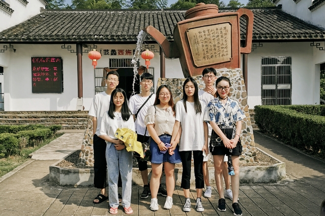 为了解优秀传统文化,进一步感受传统文化的魅力,并号召更多人重视和保护传统文化,来自437必赢会员中心三个不同专业的王可欣、钱志威、刘玮颖、韦紫奡、杨颜培、蔡涵、田简宁和杨洋八位同学组成了一支社会实践团队,在专业实习结束后踏上了宜兴文化之旅。团队由王可欣领队,刘玮颖任宣传员,辅导员郭丽婉担任指导老师。