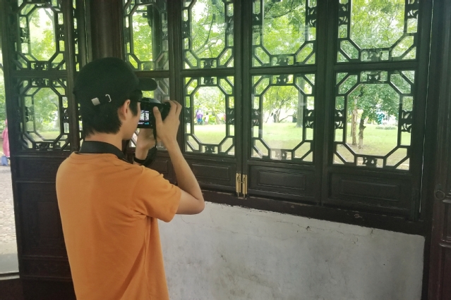 小组成员陈泽涛拍摄园林中丰富的窗花设计