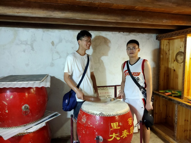 此外,团队成员还参观了大奏鼓演艺厅。大奏鼓作为石塘箬山渔区的民俗舞蹈,被誉为“中国渔村第一舞”,也是温岭市第一个跻身国家级“非遗”行列的优秀文化项目。大奏鼓舞蹈动作粗犷而滑稽,舞者全为男性,具有鲜明独特的艺术风格,同学们也体验到了大奏鼓的独特魅力。