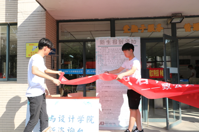 上午9时,迎新工作人员在桃苑四号楼大厅集合,在分配了具体的任务后大家立刻有条不紊地行动起来。同学们将迎新所需物品清点完毕后搬运至宿舍楼一楼大厅进行布置。工作人员们虽汗流浃背,但仍不辞辛苦,认真工作,崔旭辉同学说:“为了给学弟学妹们提供便利,这些工作都是值得的。”经过大家认真细致地准备,学院在迎新点分别设立了学生登记处、家长休息区、新生咨询台,同时还筹备了生涯体验活动、拍摄全家福等富有创意的特色迎新活动,充分展现了学院师生良好的精神风貌。新生从报到登记到入住宿舍的过程,时刻体现着设计学院服务育人的热情。下午4点,校领导一行视察迎新点布置情况,亲切慰问值班人员,询问指导迎新工作,并在迎新点合影留念。