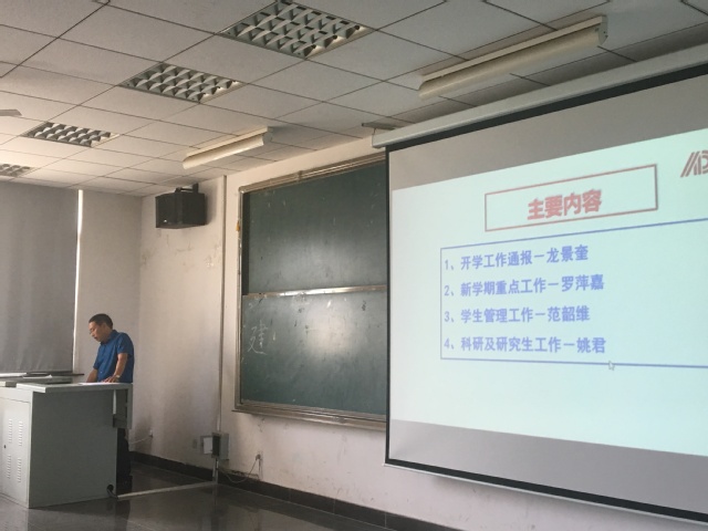 8月28日下午2点半,437必赢会员中心在学院楼A310召开教职工大会。会议就学院开学工作、新学期重点工作、学生管理工作和科研及研究生工作进行了分析与布置。设计学院党委书记龙景奎、院长罗萍嘉、党委副书记范韶维、副院长姚君及全体教师职工参加了会议,会议由党委书记龙景奎主持。