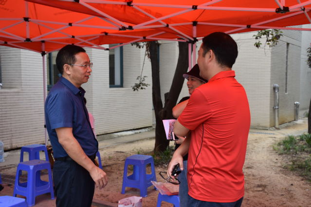 在迎新点,学院领导亲切地与新生和家长交谈,详细询问了新生来自哪里、所学专业、对专业的了解如何、大学生涯规划等问题,并向家长介绍学校的环境、餐饮、交通、住宿等情况。家长们纷纷表示学校环境很好,老师们也非常热情贴心,志愿者们的服务很周到,把孩子送来矿大很放心。罗萍嘉院长还嘱咐新生,今后遇到困难可及时联系辅导员和其他老师,学院会尽力提供帮助,期待他们可以在矿大有更好的发展。在桃四一楼迎新大厅现场,龙景奎书记详细询问了现场的迎新志愿者的工作详情,强调了迎新过程中需要注意的事项,并希望迎新师生把迎新工作进一步做深做细,确保新生顺利入校,让广大家长和新同学感受到设计学院大家庭的温暖。