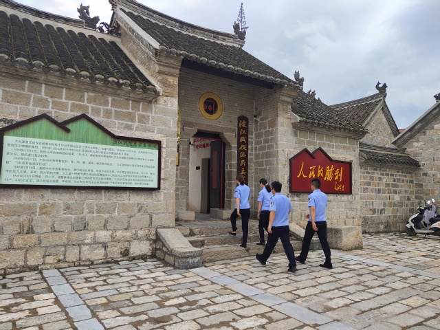 在参观调研时,遇到了两支同样前来调研学习的队伍,其中的一位同为矿大学子的警察哥哥还亲切地与队员问候交流。走在斑驳的石板路上,看着一件件朴素陈旧的摆设,一段峥嵘的历史岁月在实践队员头脑中逐渐丰满起来,站在会议室里静静凝视着那几张在岁月冲刷下斑驳了的地图,仿佛就看到了首长们慷慨激昂讨论着战事进程的画面。众多将帅聚集铜山北望村,研究和部署渡江作战,决胜千里,震惊中外。这是中国革命史上乃至世界战争史上的一个重大事件,是铜山人民的光荣和骄傲。
