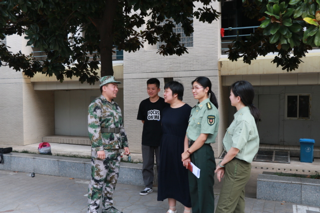 自军训动员大会开始,437必赢会员中心的领导和老师们一直高度关注军训状况。9月2日上午10时,设计学院党委副书记范韶维来到军训训练场进行检查指导,了解学生们首日训练的进展情况,并与承训教官、新生辅导员和参训学生进行亲切交谈。