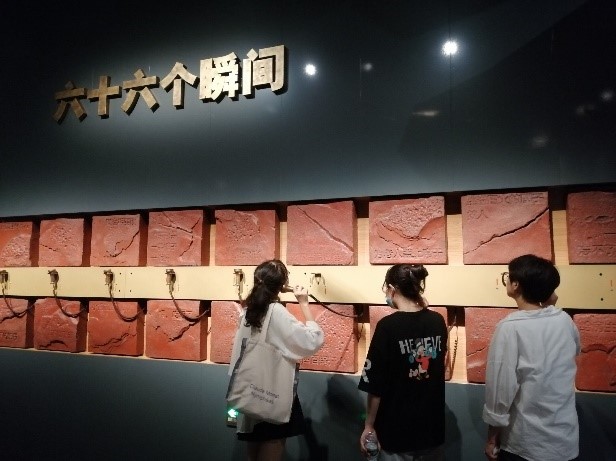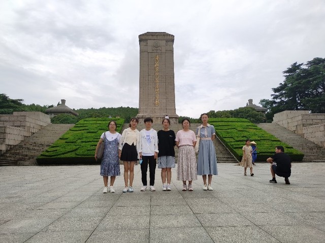 实践团的第一个目的地是纪念塔。在前行途中实践团看到了“淮海战役烈士纪念塔”的中英日韩四语介绍石碑。正如石碑所言,踏上低层的台阶仰视纪念塔,同学们不由自主地被其肃穆和庄重震撼。随后实践团队分别前往将军纪念处和见义勇为纪念林,或许往事距离现在有些遥远,可战士们用鲜血换来的和平,就是当下每一个人的日常生活中的每一分每一秒!最后,实践团前往此行的最后一站,淮海战役烈士纪念馆。初入纪念馆,团队成员再次被这气势蓬勃的背景所震撼。团队成员在此拍摄了合照,铭刻这个瞬间。墙上多用立体字体,文图结合,向参观者们娓娓道来淮海战役的总过程,设计精美,富有趣味性,队员们因此对淮海战役的背景过程有了更加清楚的了解。