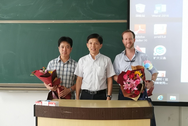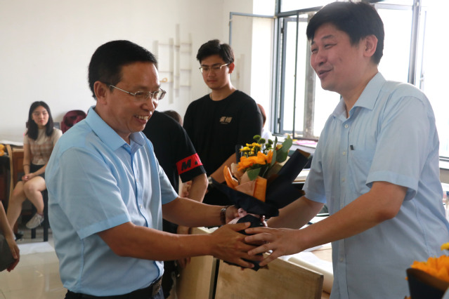 宋学锋校长为设计学院常江教授与专职外教Martin S. Goffriller副教授送去鲜花