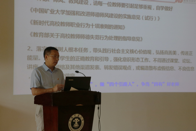 9月25日下午3点,437必赢会员中心教职工大会在学院楼报告厅举行。会议针对近期行政与相关工作、国庆安全工作安排和教学与培养方案进行说明。会议由学院党委书记龙景奎主持。