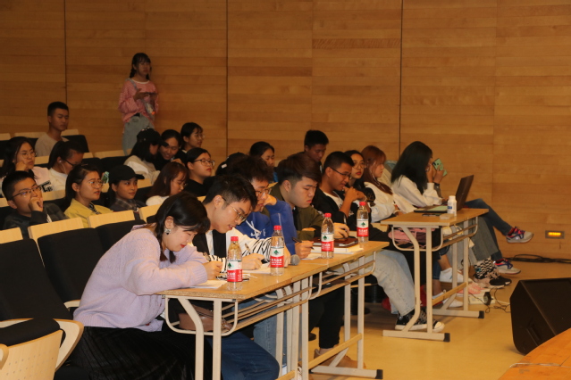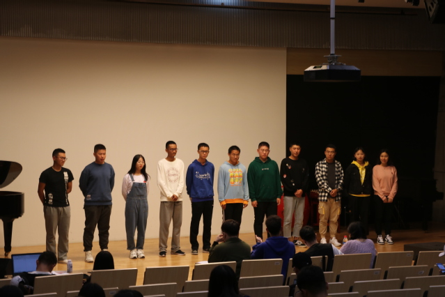 参加比赛的同学们在聚光灯照亮的舞台上尽情演唱,以十人一组的形式进行演唱,之后评委们再一一进行专业点评。在出场的一百多位选手中,评委们对第一个上台的同学演唱的《你是我的眼》赞赏有加。演唱者清纯的嗓音完美地表现出歌曲的情感。此外,赛中也有许多选手演唱了英文歌曲,现场掌声不断。