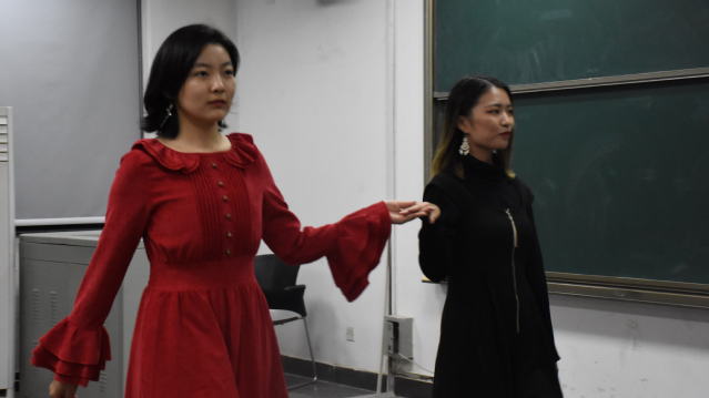 活动伊始,副部长黄辰嫣然向礼仪队的成员们分发了关于礼仪的调查问卷,用以检测成员们对礼仪知识的掌握程度。随后,部长团向参训人员讲解了仪容礼仪、仪态礼仪、手势礼仪等相关知识,详细介绍了站、立、行、走的礼仪规范。接着,成员们在教室一字排开,先后进行了站姿训练与行姿训练。训练过程中,部长团在示范的同时,还针对成员们出现的问题进行纠正并不断对具体动作进行调整。培训最后,女生部针对礼仪文化月的礼仪文化活动、礼仪中心培训、礼仪文化月晚会的前期准备进行了工作部署,以保障后期工作顺利进行。