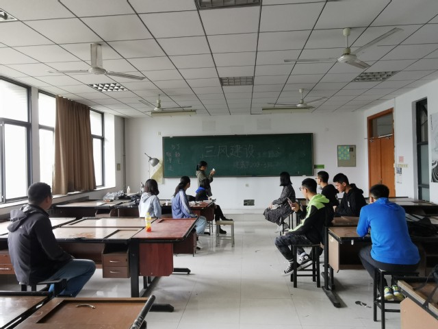 10月13日,437必赢会员中心建筑学19-3班在专业教室以“三风建设”为主题开展班会。班主任李成老师与班委、班内入党积极分子及各寝室长参加了此次班会,班会由班长马晓言主持。