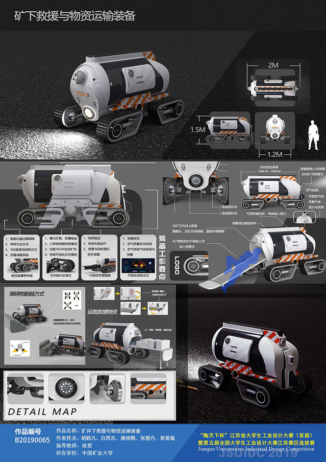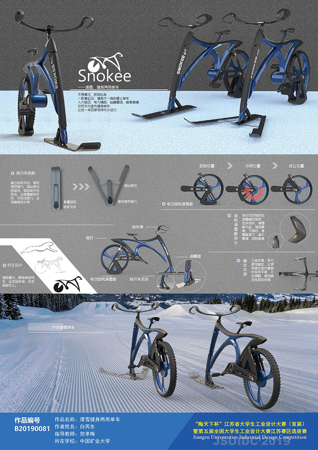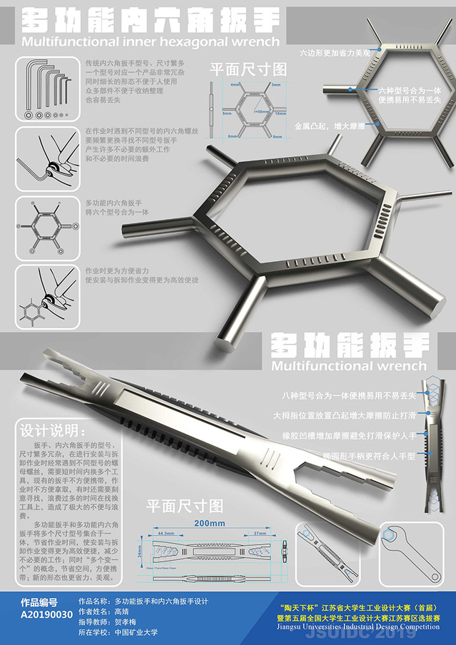 本次大赛共收到全省28所高校的1476件有效作品,共评选出20项一等奖、29项二等奖和150项三等奖。建筑与设计学院工业设计系积极组织、学生踊跃参与,获得了好成绩。其中胡鹤凡组的“矿井下救援与物资运输装备”、白芮东的“滑雪健身两用单车”、高婧的“多功能扳手和内六角扳手设计”3项作品获得了一等奖。