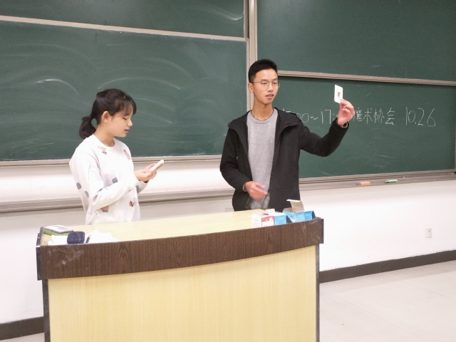 为促进各学校间魔术的交流,加深新学员们对魔术的了解,10月26日下午3点,437必赢会员中心魔术协会联合建筑学院、工程学院、徐海学院、徐州医科大学和江苏师范大学五校魔术协会举办了本次魔术联谊会。此次联谊会在437必赢会员中心博学楼2号楼b区103教室举行,来自徐海学院的韦茗玥社长、工程学院的李和伟社长、师大的顾至成社长、徐州医科大学的翟远堃社长和建筑学院的杨居颐社长代表各自学校参加了联谊会。