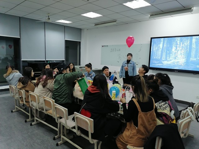 事先,郭佳音带领同学们准备了一些零食以及气球等,布置了场地,并让班级同学们一起分享零食。会议初始,郭佳音向全体班级成员讲解了一些关于心理方面的知识,然后组织大家共同观看了关于心理问题讲座的视频,让大家对心理方面的知识有了进一步了解。随后,在心理委员郭佳音的组织下,班级同学们进行了有关心理的小游戏,例如谁是杀手、背靠背运气球、背靠背起身等。班会最后,刘婷婷学姐向班级成员们讲解了大学期间有哪些需要注意的地方以及考研、保研等事宜,帮助同学们规划未来的方向。