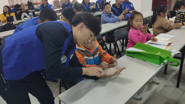 活动伊始,活动负责人王涛对大家进行了分工,以便活动有序进行。然后,按照分组要求,大家开始了魔术教学。教学过程中,魔术社社员们仔细地讲解着知识,耐心地解决小朋友们在学习中遇到的困难。此外,社员们在和孩子们积极交流,尽量用通俗易懂的语言对他们进行指导,确保活动的开展起到实际作用。