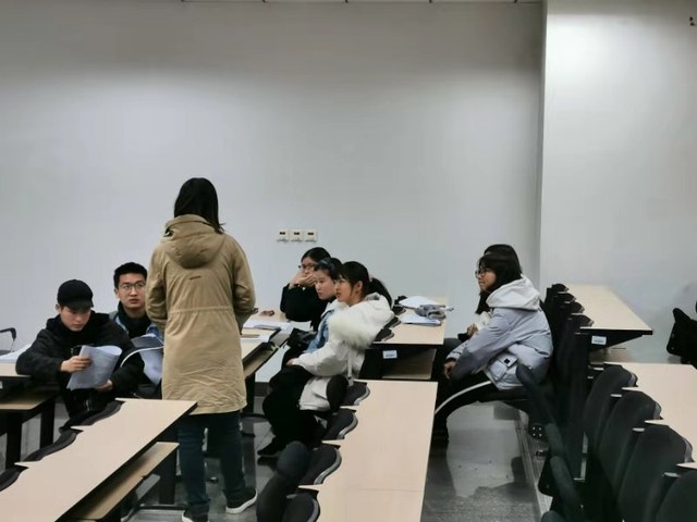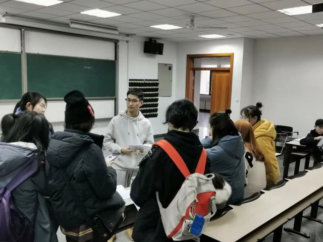 活动伊始,学习部成员为大家准备了四级的相关学习资料,并分发到每位同学手中。活动负责人贾庭玺介绍了各个负责和学弟学妹英语对接的学长学姐。之后,大一年级学生们以组为单位和对接的学长学姐们围成一圈,一对一进行英语学习经验的交流,现场氛围轻松愉悦。