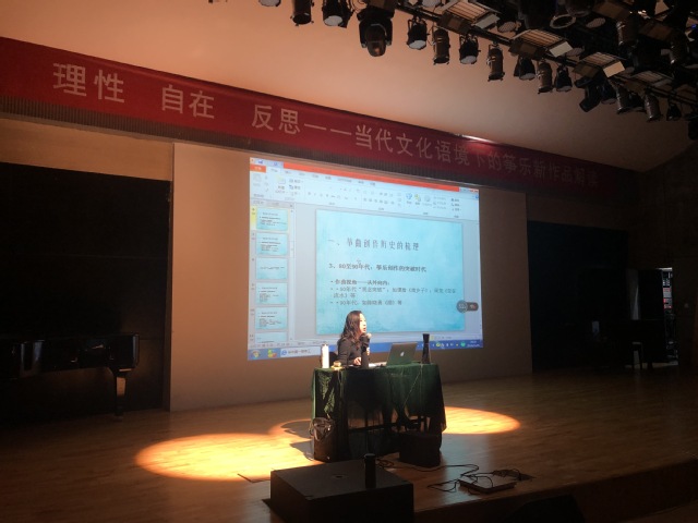 11月25日19点,437必赢会员中心音乐系于设计学院报告厅举办了“理性,自在,反思——当代文化语境下的筝乐作品解读”主题讲座。本次讲座由中国音乐家协会古筝学会理事、中国音乐金钟奖作曲比赛银奖获得者刘文佳老师主讲,设计学院音乐系主任刘振主持讲座,音乐系全体师生及校内外音乐爱好者前来聆听。
