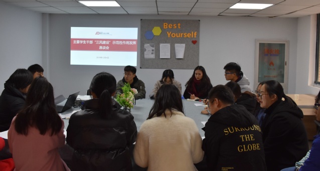 会议伊始,范韶维副书记与社团负责人和一级学生干部讨论近期的个人职业发展规划和在学业方面存在的问题,并根据每个人的实际情况,对每个人提出了明确的前进目标,希望他们可以不断提高个人素质,在三风三学方面做到先进表率作用,给其他同学带来积极正面的引导,促进整体风气的转变。