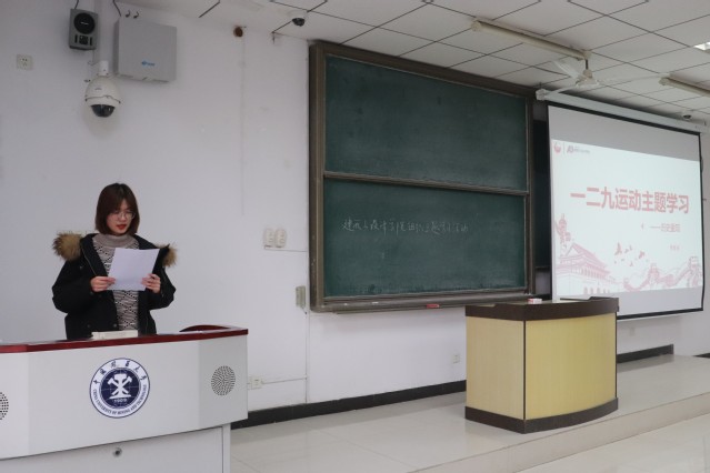 活动伊始,孙健乔同学带来了主题为“回望历史、展望未来”的诗歌朗诵。铿锵有力的语调、声情并茂的朗诵,再现了在动荡岁月里青年学生们的满腔热血与爱国情怀。接着,设计学院团委副书记杨阳通过知识问答的方式,从起因、过程、高潮、尾声等方面介绍了1935年“一二·九运动”的主要事件经过。她说到,这次行动得到了全国学生的回应和人民的支持,形成了全国人民抗日民主运动的新高潮,推动了抗日民族统一战线的建立。活动中,学生会生活部部长钟晴谈到,一二·九运动展示了那个时代大学生的爱国热忱和民族使命感,作为新时代的青年也应该拥有这份真挚的爱国热情。最后,章依格对活动进行了总结发言,她希望大家能牢记前辈先烈的奋斗与付出,发扬他们身上传递的爱国精神,为中华民族的伟大复兴奉献自己的青春和热血。