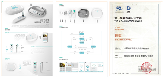 3 | 尘肺病患者家庭康复产品系统设计 | 唐晓腾 (工业设计工程2017级硕士研究生) | 姚君 | 第八届太湖奖设计大赛 | 铜奖 |