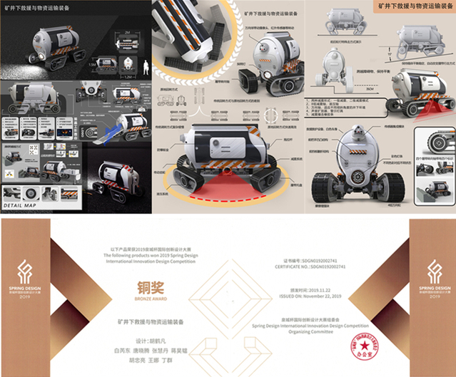 作品名称:矿下救援与物资运输装备 设计:胡鹤凡等
