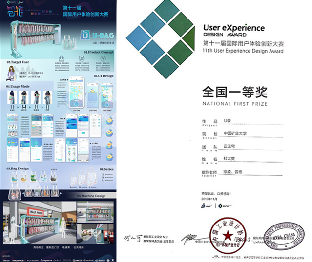 4 | U袋 | 杜大爽 (工业设计2016-2班本科生) | 宗威 曾栋 | 第十一届国际用户体验创新大赛 | 一等奖 (银奖) |