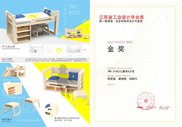 23 | TWO SIDES儿童床&沙发 | 蒋昊韫 (工业设计工程2019级硕士研究生) | 王菊 | 江苏省工业设计学会奖-第一届凌城·至舍杯家具设计年度奖 | 金奖 |