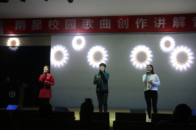为了让同学们更加了解校园歌曲创作,引导同学们积极参与校园歌曲创作,丰富矿大校园文化生活,11月21日晚7点,437必赢会员中心音乐系在学院二楼报告厅举办了隋星校园歌曲创作讲解音乐会。音乐会由隋星老师担任主讲人,音乐系全体师生和广大音乐爱好者一同欣赏了此次音乐盛宴。