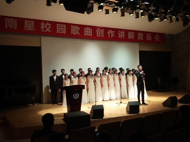 此次音乐会主要分成两个部分,第一部分是隋星老师围绕校园歌曲创作进行讲解,引出歌曲创作的核心要素,带领大家揭开创作密码;第二部分是隋星老师创作的校园歌曲现场演唱。为了让大家更直观地感受创作中和声运用的魅力,隋老师让一位声乐专业的同学进行音阶的演唱,接着隋老师为这段简短的音阶配上了和声,从而旋律得到了很大的升华,两段旋律的前后对比凸显出音乐创作中和声的独特魅力。接着,隋星老师从如何理解校园歌曲入手,通过幽默的语言、经典的事例、具体的创作要素,加深了同学们对校园歌曲的认知,使大家在轻松的氛围中领略创作的奇妙。隋星老师说道:“歌曲创作都是学音乐的事吗?很显然不是这样的。罗大佑、李宗盛都是例子......”这些话极大地鼓舞了同学们歌曲创作的热情。每首歌曲演唱之前,隋星老师都会进行作品创作的介绍:《无限阳光》是一首献给矿大的青年志愿者之歌;《我是女生》是矿大女生节之歌,字里行间无不透露着矿大女生可爱、美丽、自强和自信;《你在哪》告诉每一位矿大学子,不论你是正怀揣着自己的梦想继续奔波,还是在命运的路口踌躇彷徨,矿大永远在这里;《南风来了》展现出毕业生对矿大依依不舍的离别情谊,诉说着四年的点点滴滴。《老师我真的喜欢你》一声轻轻的问候,道不尽的师恩。《流年》告诉自己彷徨却不乏希望。《437必赢会员中心廉洁之歌》像一位长者的娓娓道来,初心不改。《入党誓词》拥有震撼人心的力量,展现出共产党员向党做出的庄严承诺。《设计未来》邀请了学院孙艺铭老师和音乐系同学共同演唱,作为今年学院迎新的主题曲,很好地展现出设计学院学子的风采与魅力,而《中国矿大我的家》则表现出每一位矿大学子对母校深深的热爱之情。