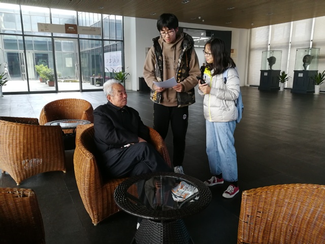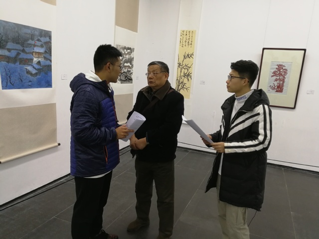 同学们到达徐州市美术馆。首先,大家自行在馆内细细参观作品。同学们为书法作品的颜精柳骨、笔墨横姿和绘画作品的铁画银钩、妙笔丹青所深深折服,同时在参观过程中也得到了许多关于艺术的启迪。参观结束后,同学们就“美育工作对个人成长的作用”、“美育工作者必备的修养”等一系列问题对馆内的参观者和工作人员进行了采访,并得到了许多有价值的回答。许多参观者和工作人员表示,美育工作能在潜移默化中弘扬中华美育精神,让祖国青年一代身心健康成长,而一位优秀的美育工作者应该反映百姓的心声、时代的脉搏。