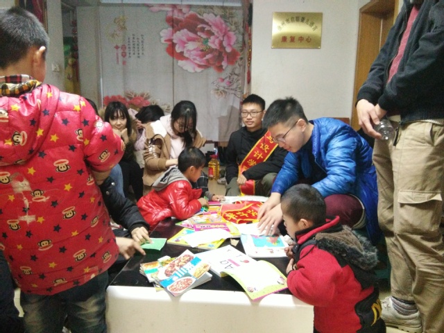 徐州启聪聋哑儿童康复中心的孩子们初见志愿者大哥哥大姐姐们显得既兴奋又有些拘束。为了活跃气氛,拉近与孩子们之间的距离,部分志愿者带领小朋友们玩起了老鹰捉小鸡的游戏,欢乐轻松的气氛不断蔓延,感染了在场的每个人。与此同时,有的志愿者默默地找来扫帚和拖把,打扫起活动室来,有的志愿者发挥专业特长,教起孩子们做手工和画画。随后,在征得启聪聋哑学校徐老师的同意后,志愿者们带领孩子们来到了离聋哑学校不远的徐州市淮海战役纪念塔进行参观,孩子们都兴致高昂,现场气氛十分融洽。“有的孩子走累了,我们便背着孩子们走。没有任何语言表达,只有脸上绽放的笑容”建筑16-3班汪配龙同学说。