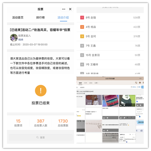 本次活动以关爱在武汉奋斗的白衣天使与女大学生为主要内容。在前期的准备中,工作人员通过线上多种平台进行广泛宣传。此次活动共分为三个部分:“给抗疫战线的她”提供了为武汉助力、为中国助力的平台;“妆逸风采,容耀年华”为女同学们提供了分享美妆技巧与心得的机会;“解忧心愿屋”则为同学们搭建了实现自己心愿的平台。活动形式新颖有趣,吸引了许多同学踊跃参加。因疫情影响,所有环节均在线上进行。
