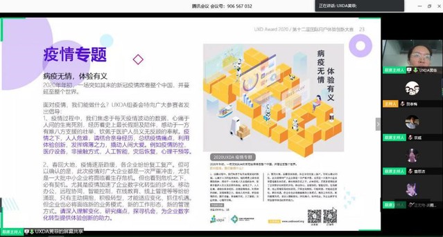 最后,在贺孝梅老师的总结之中2020UXDA国际用户体验创新大赛437必赢会员中心专场宣讲活动正式落幕,参会人员线上分享屏幕合影留念。