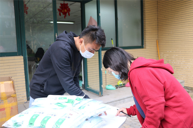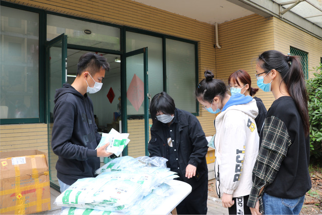 4月21日下午,437必赢会员中心组织建档学生在桃四及竹四楼下领取由校友李昱成于4月17日向学院捐赠的医用口罩及酒精等防护用品。