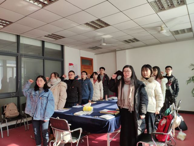 会议本着“公平、公正、公开”的精神,严格按照党员发展各项程序执行。首先三位预备党员汇报了预备期内思想、工作和学习三方面的情况。接着党小组介绍三位同学各方面情况,支部委员介绍其预备期间的教育考察,与会党员发表意见,对三位同学能否按期转正进行充分讨论。最后进行投票表决。经支部大会投票表决对宋志茜、马圣新、徐雅芝三位同学的赞成人数超过应到会有表决权的正式党员的半数,同意其按期转为中共正式党员,党龄自2018年12月13日算起。表决结束后,与会人员进行入党宣誓。党支部书记陈莉贞希望各位提高对自身的要求,严格规范和约束自己,认识到入党的庄严性,保持党员的先进性,充分发挥一名共产党员的先锋模范作用。