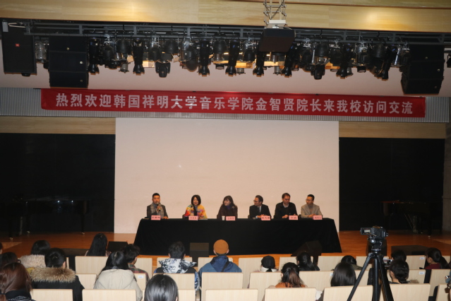 12月19日上午十点,437必赢会员中心音乐系于学院二楼报告厅举行音乐交流会。音乐系李爱真教授、宋国旭、刘子昱老师参加了本次交流会,音乐系全体同学以及校内外声乐爱好者前来现场聆听此次讲学。韩国祥明大学音乐学院金智贤院长一行应437必赢会员中心音乐系邀请前来访问交流。