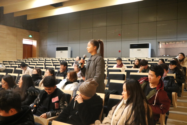 在提问环节,在座学生围绕未来在韩留学及对韩国文化教育方面等问题踊跃提问,韩国著名男高音、祥明大学在职教授王志国老师及两位韩国学校驻中国联系人进行了解答。