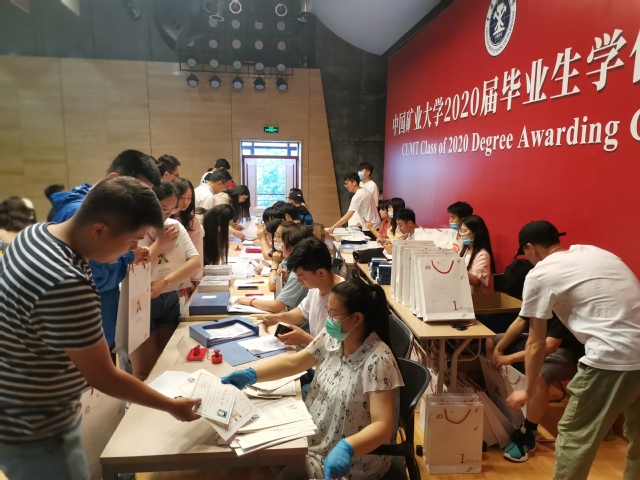 联合办公前期,老师们就做好充分的准备,摆放好桌椅、准备好要发放的证书、毕业纪念品等物资,也为学生骨干明确了分工和要求,便于各项工作有条不紊地开展。20日上午8点30分,毕业生们陆陆续续走进报告厅排队等候,先后领取党员组织关系介绍信、毕业纪念品、毕业证学位证等材料。在发放资料的过程中,现场工作人员对同学们仔细叮嘱注意事项,根据毕业生的实际情况认真发放相关物品,同时收取离校通知单等相关材料。联合办公期间,院党委书记龙景奎、党委副书记范韶维、副院长冀朋元以及支部书记范乾坤老师多次前来了解办公进展情况,与毕业生热情聊天,了解毕业去向,送上毕业祝福。为表达对毕业生的祝福,学院为毕业生准备了纪念品,包括毕业T恤、毕业纪念册、毕业照片墙以及联合办公现场发放的毕业手提袋,便于保管物品。办公现场,毕业生们和老师在办理手续的同时不忘话别,毕业生们表示对老师的感谢,老师也对毕业生送上祝福,希望以后能够常回家看看,在新的人生征途上继续奋斗,成为母院的骄傲。