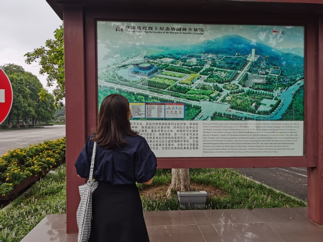 为了进一步了解红色文化,实践队成员参观了淮海战役纪念馆。淮海战役烈士纪念塔面向朝阳,巍然耸立,两侧为大型浮雕,右侧是人民解放军一往无前的英雄形象,左侧是人民奋勇支前的壮丽情景。它记录着那战争年代的沧桑和奋斗年代的无畏。其中淮海战役纪念馆馆内陈列分正厅、序言、战役实施、人民支前、缅怀先烈五个部分,展出数千件珍贵的革命文物、历史照片。