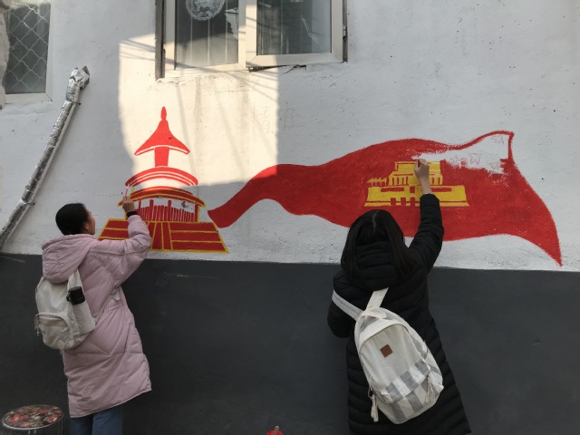 同学们在进行墙绘