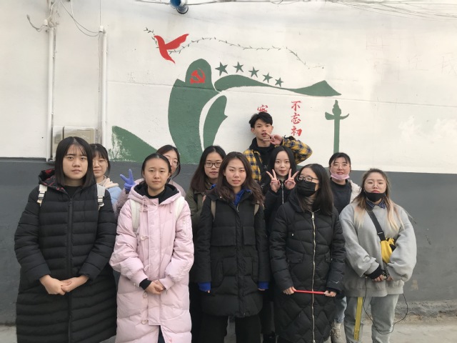 活动前期由团支书王秀芳和班委确定墙绘时间和地点,再由团支部分组商讨决议绘制方案,最后投票选择一套完整的墙绘方案,墙绘内容是以新农村建设为主题。每一小组进行协调分工后,在每一条路的主干道和分支道进行了绘画。绘制墙面,大家的分工明确,有的成员负责调颜料,有的负责勾画线条,有的同学负责上色,虽然时值寒冬,但墙绘活动有条不紊得进行着。许多村民会多次出门观看墙绘并纷纷称赞,称让他们的社区变得更加有活力了。