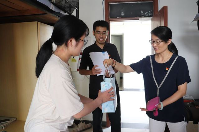 走访过程中,龙景奎书记、许梓楠副书记和周天涯老师与学生亲切交谈,深入了解同学们在学习、生活等方面的适应情况。龙景奎书记嘱托新生,要尽快转变新身份,融入新环境,适应新生活,及时做好大学规划,遇到困难和问题及时联系学院老师,学院会尽全力帮助同学们。许梓楠副书记也叮嘱新生,在假期出行时要做好个人防护,同时注意宿舍安全、水电安全和人身财产安全等问题。随后,龙景奎书记和许梓楠副书记为新生们送上了节日礼物。同学们对学院的关怀深受感动,并表达了深深谢意。