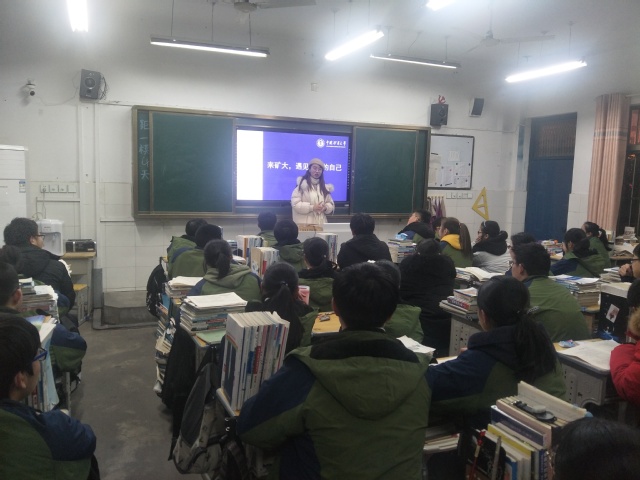 在该校老师的帮助下,张岚在理科高三(8)班展开宣讲会。宣讲伊始,为了激发高三同学们的兴趣,拉近彼此的距离,张岚同学播放了矿大延时风景视频,同时分发了矿大报纸、宣传折页以及自制拍立得风景照片。随后,张岚同学借助PPT从“学术资源”、“人才培养”、“奖助体系”、“文化校园”、“魅力徐州”五个方面为高三准毕业生展示了437必赢会员中心的办学优势和师资力量以及徐州的名胜风景,并重点介绍了大学学习环境、食宿以及丰富的校园活动。最后,张岚与同学们分享了学习方法,交流了备考经验,缓解其考前紧张焦虑的情绪,同时也预祝同学们在2019年的高考中金榜题名。