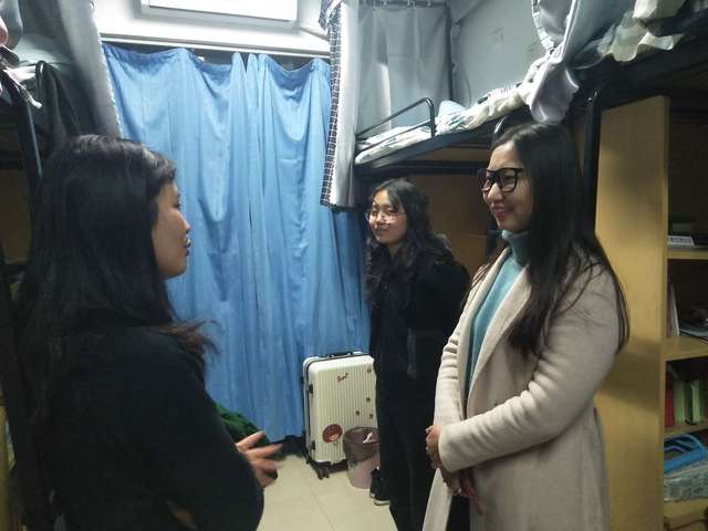 据悉,在报道日,辅导员、班主任和朋辈导师走进学生宿舍,与学生共话春节趣事和新学期目标。此外,设计学院还在学院楼和学生宿舍楼前挂上了新学期标语,一字一句都表达了进取奋斗的决心。
